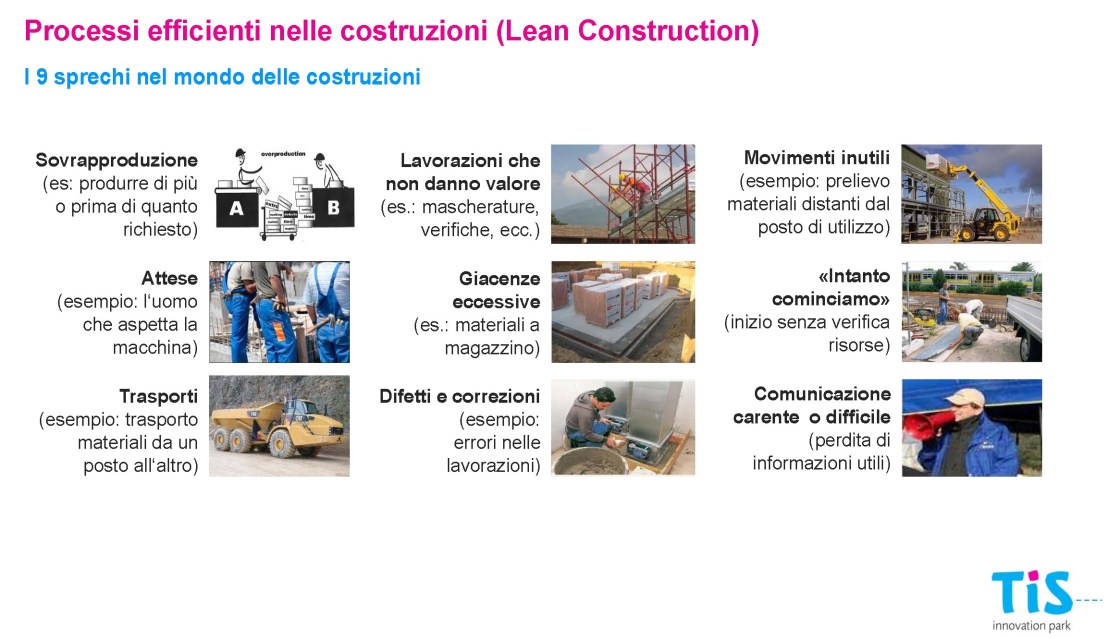 L’applicazione al settore delle costruzioni incide su 9 tipologie principali di sprechi.