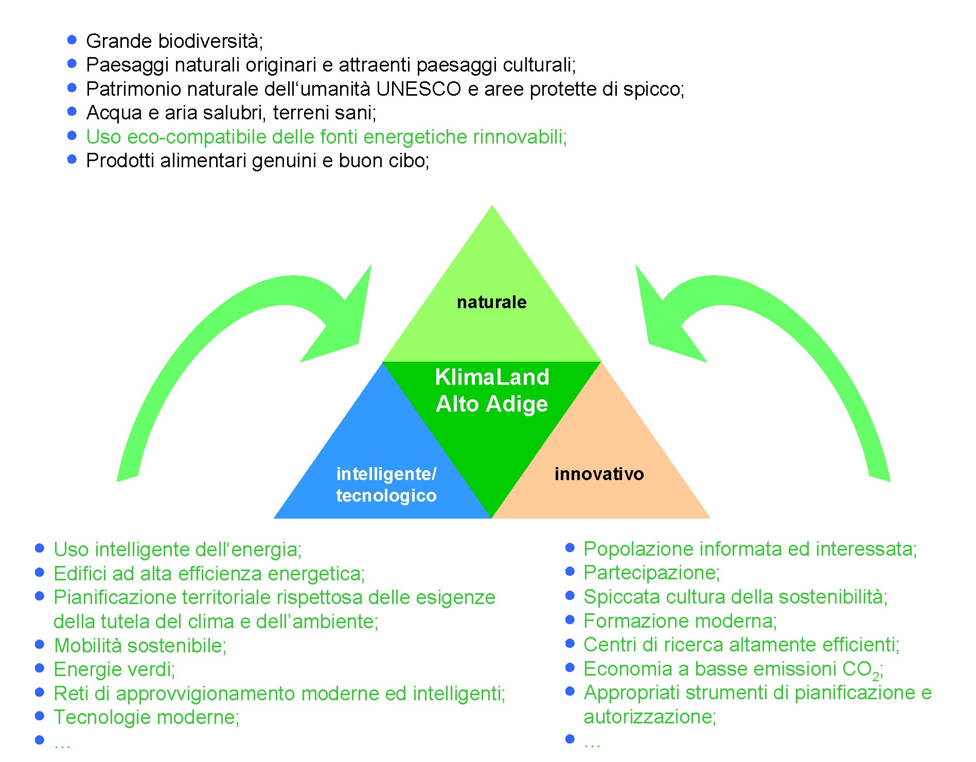 L’Alto Adige è la provincia italiana che in questi anni ha messo in campo le più efficaci e ambiziose politiche e ha disegnato la più chiara prospettiva di innovazione con l‘obiettivo di uscire dalle energie fossili. Lo scopo è raggiungere l’autosufficienza energetica grazie al mix di fonti rinnovabili.