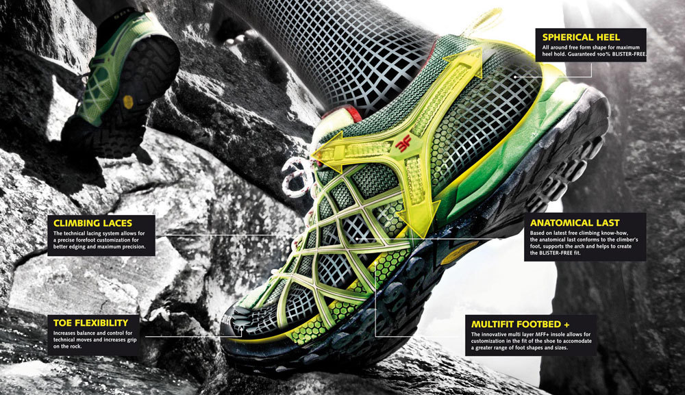 Wildfire è invece la nuova scarpa di Salewa per le arrampicate in montagna. La tecnologia MFF (Multi Fit Foodbed) è diventata MFF+ così da garantire un’aderenza anatomica tridimensionale per l’intera lunghezza della scarpa. La superficie liscia esterna della scarpa è rinforzata da una struttura a rete con l’innovativa tecnologia EXA SHELL, che dà leggerezza e resistenza. Con questo prodotto Salewa, insieme alla tenda Caspule Zoom, ha conquistato tre Industry Awards 2012 alla fiera OutDoor di Friedrichshafen, l’evento espostivo più importante per il comparto europeo degli sport di montagna.