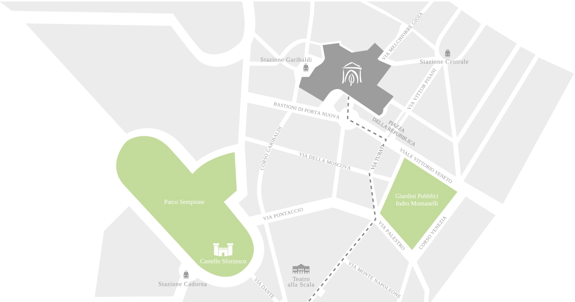 Porta Nuova è il naturale prolungamento di via Manzoni e di via Turati, a soli 1.500 metri dal Duomo. Da qui in pochi minuti a piedi è possibile raggiungere piazza San Babila, il Castello Sforzesco e i giardini di Porta Venezia. Porta Nuova accoglie la sfida di riqualificare un’area dismessa e degradata. I quartieri circostanti sono stati fonte di ispirazione e di un dialogo volto a ricomporre l’armonia e l’equilibrio delle architetture esistenti integrandole con i progetti per i tre quartieri: Garibaldi, Varesine e Isola. Porta Nuova ha una storia fatta di “percorsi” e di comunicazione. Già nel XIX secolo, quando la Stazione Centrale di Milano era in piazza della Repubblica, i treni che percorrevano la Lombardia attraversavano le aree di Garibaldi, delle Varesine e di Isola. Nei primi decenni del XX secolo, quando la stazione Centrale fu spostata nella sede attuale, lasciò spazio nell’area delle Varesine alla stazione di Porta Nuova. Negli anni Sessanta, l’arretramento dall’area delle Varesine portò alla realizzazione della stazione di Porta Garibaldi lasciando quest’area strategica per Milano sospesa per oltre quarant’anni. Si generò così una ferita nel tessuto urbano, che portò la zona a “disconnettersi” non solo dalla città ma anche dai quartieri circostanti. Finalmente, nel 2007, le tessere del mosaico cittadino vengono ricomposte nell’area di Porta Nuova.