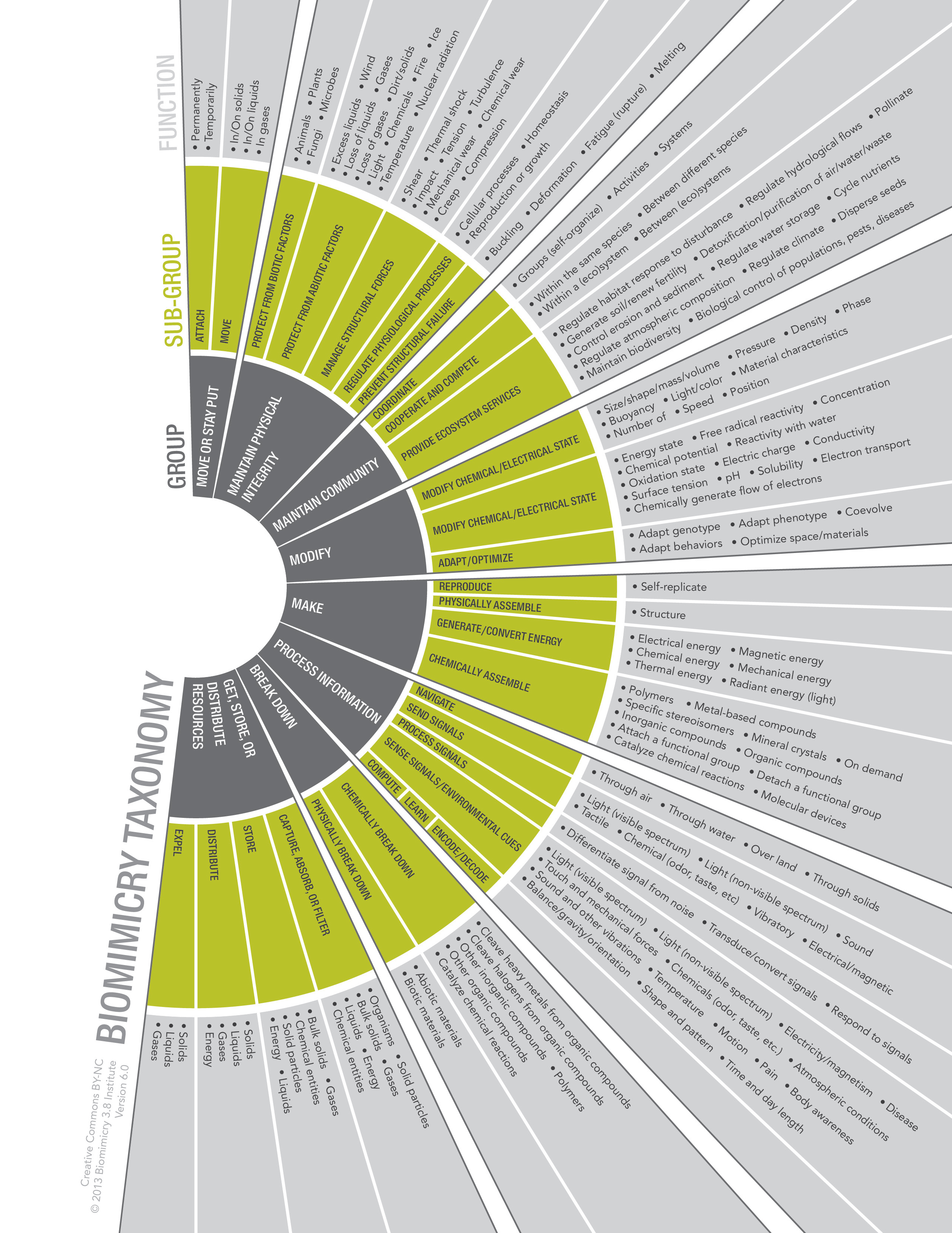 Biomimicry is an approach to innovation that seeks sustainable solutions to human challenges by emulating nature’s time-tested patterns and strategies. The goal is to create products, processes, and policies—new ways of living—that are well-adapted to life on earth over the long haul. The core idea is that nature has already solved many of the problems we are grappling with. Animals, plants, and microbes are the consummate engineers. After billions of years of research and development, failures are fossils, and what surrounds us is the secret to survival. [from AskNature.org web site]