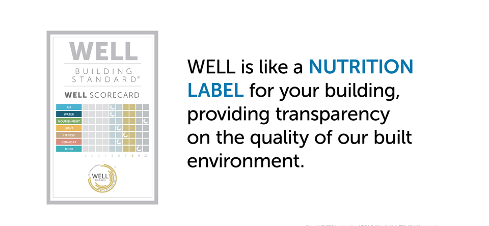 WELL provides a framework for project teams to incorporate a variety of strategies to integrate human health and well-being at the heart of building design, construction and operations. WELL also allows project teams to innovate and transform the way humans can interact with the buildings and spaces they live in. WELL allows people to connect with buildings. [Sources: WELL Brochure. Copyright© 2016 by Delos Living LLC]