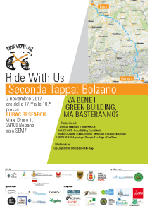 L’evento vedrà la partecipazione di Daniele Pernigotti (Ride With Us), Marco Caffi (Green Building Council Italia), Roberto Lollini (EURAC research, Istituto per le Energie Rinnovabili), Ulrich Santa (Agenzia per l’Energia Alto Adige – CasaClima) e sarà coordinato da Carlo Battisti (IDM Südtirol Alto Adige).