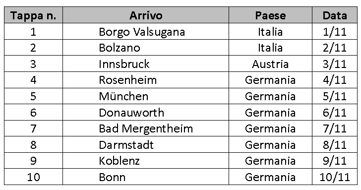 La partenza avverrà simbolicamente venerdì pomeriggio 31 ottobre con il prologo Venezia-Mestre, mentre la mattina del 1 novembre vi sarà la partenza ufficiale del tour da Marghera.