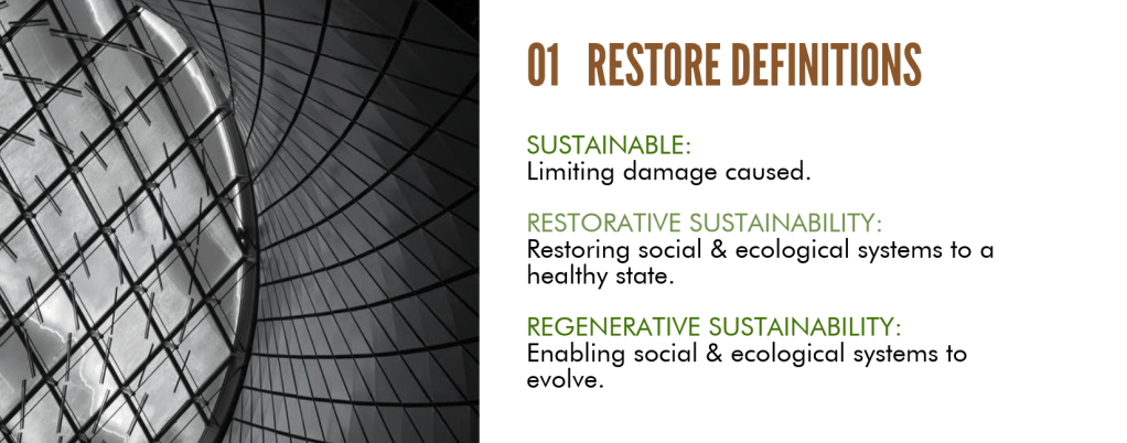 La prima training school di RESTORE aveva l’obiettivo di trasferire ad un primo gruppo di professionisti un nuovo paradigma della sostenibilità, sviluppato nel primo “pacchetto di lavoro” del progetto. L’approccio è stato quindi volutamente più sistemico che tecnico e tecnologico. “Moving beyond the state of the art: where do we want to be?” recita una delle domande introduttive al corso. Per questo è importante prima capire cosa vogliamo essere, dove vogliamo andare (parlo soprattutto del nuovo futuro dell’ambiente costruito che ci immaginiamo). Poi arriva il momento della tecnica e della tecnologia, dei metodi, delle pratiche. Le soluzioni ci sono, già oggi, dobbiamo renderle funzionali ad una visione.