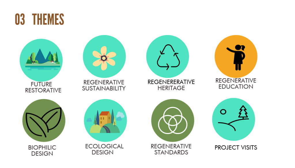 Una mole di concetti, idee, spunti, prospettive, che raccontano un nuovo quadro di riferimento, un nuovo “framework”. Non ci siamo fatti mancare proprio nulla: restorative e regenerative sustainability, sustainability education, biophilia e biophilic design, sustainable heritage, mindfulness for sustainability, landscaping for regenerative sustainability. Ora ci attende un compito delicato e necessario, riuscire a realizzare una sintesi e a trasferire questo tesoro di conoscenza ai gruppi di lavoro che stanno arrivando e che dovranno tradurlo in linee guida, processi, metodologie, strumenti.